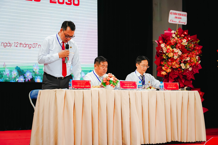 Đại hội đã thông qua Nghị quyết Đại hội đại biểu Đảng bộ Trường Đại học Bình Dương lần thứ VII, nhiệm kỳ 2025 – 2030 với 08 chỉ tiêu định lượng trong nhiệm kỳ 2025 – 2030. Với chủ đề Đại hội “Đoàn kết – Sáng tạo – Hội nhập – Phát triển”, đồng chí Cao Việt Hưng – Bí thư Đảng ủy đề nghị mỗi cán bộ, đảng viên, nhất là người đứng đầu phải thực sự gương mẫu, giữ vững nguyên tắc tập trung dân chủ, phát huy sức mạnh, đoàn kết trong đảng, sự đồng thuận trong đơn vị, quyết tâm thực hiện thắng lợi Nghị quyết Đại hội Đảng bộ trường lần thứ VII trong bối cảnh cả nước đang phấn khởi hướng đến Đại hội Đại biểu toàn quốc lần thứ XIV của Đảng, đất nước đang bước vào kỷ nguyên mới – kỷ nguyên vươn mình của dân tộc./.